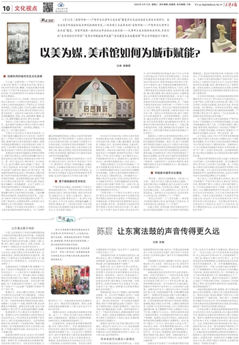 陈晨在与一些老人聊天时得知,天津法鼓与天津历史文化有着千丝万缕的联系。天津法鼓同时结合了音乐、舞蹈、武术、绘画等多种艺术门类。天津各地有着各具特色的法鼓,例如,杨柳青三大法鼓——东寓、香塔和永善,在京津冀鲁名声都很响。据相关史料记载,清末天津杨柳青人“赶大营”时,还将法鼓传播到了新疆。