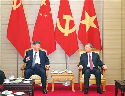 习近平指出,这次访问时间虽短,但活动丰富、成果丰硕。双方重申共同壮大世界社会主义事业的政治意愿,都期待朝着“六个更”总体目标全面推进两国战略合作,都表示抵御外部风险挑战,维护地区和平稳定和国际公平正义。我对中越关系发展前景充满信心。双方要全面落实这次访问成果,持续推进中越命运共同体建设。