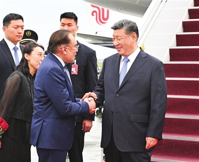 当地时间4月15日晚,国家主席习近平乘专机抵达吉隆坡,应马来西亚最高元首易卜拉欣邀请,对马来西亚进行国事访问。专机抵达吉隆坡国际机场时,马来西亚总理安瓦尔,外交部部长穆罕默德,陪同部长、交通部部长陆兆福等高级官员热情迎接。