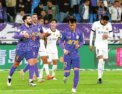 本报讯(记者 顾颖 摄影 崔跃勇)中超联赛第7轮,天津津门虎队昨天坐镇主场,以轮换阵容对阵卫冕冠军上海海港队,整体实力上的差距导致球队1:4告负,遭遇赛季首败。赛后津门虎队主教练于根伟表示:“这几年我们一直尽最大努力储备一套能够与所有对手抗衡的阵容,但是一方面总会遇到一些人员伤病、停赛的困难,另一方面也要给年轻球员机会,与海港队这样的对手交锋是试金石,本场比赛像李永佳、王献钧等球员的表现都非常好。”