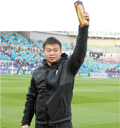 津门虎队主帅于根伟荣获中超联赛官方2月、3月的月度最佳教练奖。