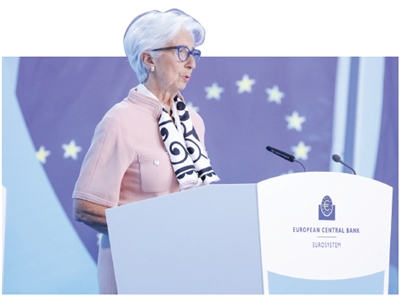 欧洲中央银行行长拉加德在德国法兰克福欧洲央行总部举行的新闻发布会上讲话。