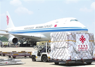 中国政府向缅甸提供的第七批紧急人道主义地震救灾援助物资4月20日抵达缅甸仰光国际机场。据了解,第七批物资包括80万盒阿莫西林胶囊、12.2万瓶对乙酰氨基酚甘露醇注射液、22.5万盒头孢拉定胶囊、48万瓶布洛芬片,总重95吨。 新华社发
