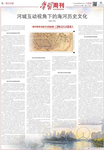 海河文化的重要表征。城市是人类物理空间的集合,更是文化的集中体现,是作为文化容器而整体存在的,具有社会属性。天津城市与海河融为一体,河与城的互动,实质是人与环境的互动,城则是人与环境互动的结果。因此,河城互动是海河文化的重要表征,为观察海河历史文化提供了一个视角。
