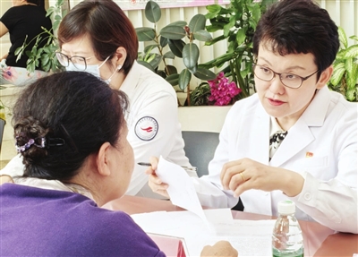 第31届全国肿瘤宣传周期间,胡元晶教授(右一)为患者义诊。 照片由受访单位提供