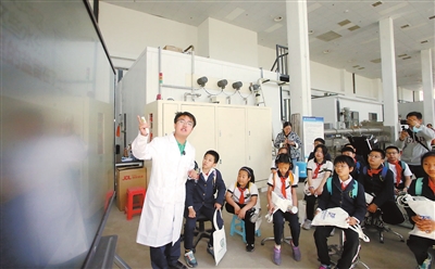 昨天,世界地球日到来,平山道小学的学生们走进天津大学环境科学与工程学院,在大学里上一堂环境科学课。 记者 张立 摄