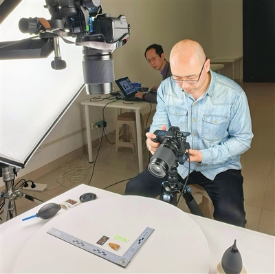 “我们在采集室安装云存储的摄像头,以保障操作流程可追溯。根据之前拍摄甲骨的经验合理规划采集台高度、设置转盘、布置灯光,并且安排了垂直与侧方的两个机位同时拍摄甲骨。”王浩说,“流程优化之后,采集效率有很大提高。从保管员将甲骨放到拍摄台上,到摄影师拍摄完成后保管员将文物收回,之前需要大约15分钟,而现在只需要大约5分钟。同时我们每周都会对采集进度和效果进行复盘,以便更好地开展工作。”