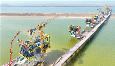 近日,津潍高铁项目滨海特大桥独流减河连续梁段(河道内)全部进入上部结构施工阶段。