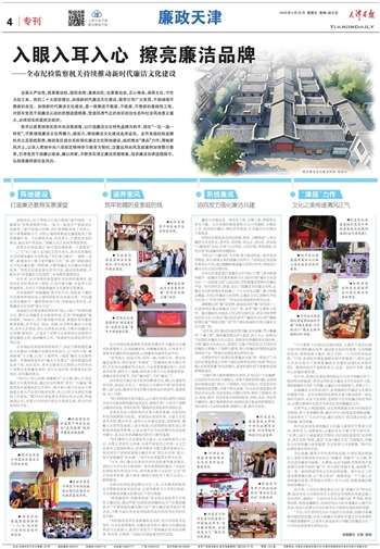 “近年来,我们推动实施思想引廉、文化润廉、警示醒廉等‘十廉工程’,确保廉洁理念深入基层、深入人心,培树10个区级机关廉洁文化示范点、持续深化师德师风专项治理、开展‘廉洁文化进企业、进项目’主题月等活动,以不同形式将廉洁元素融入干部群众教育,助力崇廉尚洁氛围充盈各领域各行业。”津南区纪委监委负责同志说。