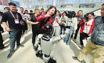 步入展馆,迎面看到的是一台正在挥舞手臂的“迎宾员”——宇树科技带来的G1人形机器人。它不仅能流畅完成挥手、握手等动作,还能通过语音交互与观众实现完美互动。“这款机器人未来可应用于校园导览、编程教学等场景,我们希望让科技真正走进课堂。”杭州宇树科技有限公司k12普教负责人李子雄表示,在他的“指引”下,机器人同步转向观众点头致意,引发阵阵惊叹。