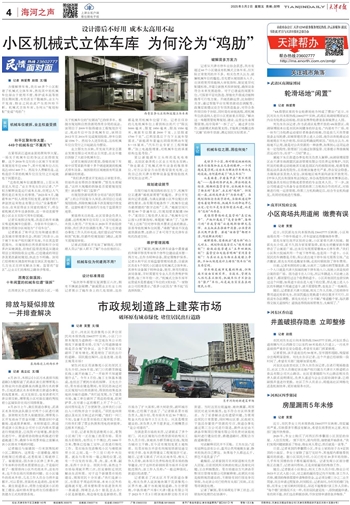 记者从天津市停车业协会获悉,我市有超过60个小区建设有机械式立体车库,但实际正常使用的并不多。相关负责人认为,破解机械车位的尴尬,首先要从规划源头入手,应该将使用效能纳入审批指标,制定差异化配建标准,并建立新技术预审制度,确保设备符合未来发展趋势。对于已建成的闲置车位,可探索平层化改造、智能化升级或功能转换等可行性方案。开阔思路运营,比如错时共享,通过智能平台实现资源动态调配等。政策层面建议设立专项改造基金,对符合条件项目给予补贴,同时简化审批流程,将机械车位改造纳入老旧小区更新重点项目。“解决这一难题需要统筹规划、建设、运营全生命周期管理,而非简单‘一拆了之’。通过多方协作、创新模式和政策支持,才能真正唤醒这些‘沉睡’的停车资源,满足居民实际需求。”