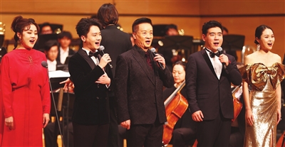 昨日,阎维文携其民族声乐大师班优秀学员在天津大剧院音乐厅为现场观众献上声乐盛会。 记者 姚文生 摄