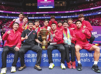 2025年苏迪曼杯世界羽毛球混合团体锦标赛昨天在厦门落幕,卫冕冠军中国队以3:1击败韩国队,连续4次、历史上第14次捧起苏迪曼杯。老将的坚韧,新人的成长,令国羽的整体实力笑傲羽坛。
