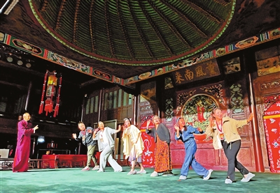 假期期间,游客在广东会馆参与沉浸式互动戏剧《大河向东》。