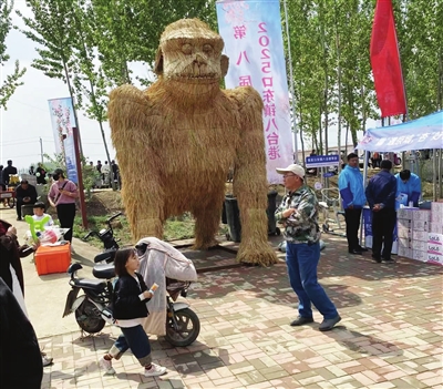 闫冲介绍,今年的活动,在舞台周围增加了更符合桃花节主题的场地布置,还新增了容纳32个摊位的市集,市集汇集了餐饮、农产品、手工艺品等多类型商户,让村民和游客在观看节目的同时,能得到更多的休闲娱乐体验。“以前的活动可能只有观赏性,现在吃喝玩乐都齐全了。”闫冲补充道,在硬件布置上,他们还增加了很多大型动物造型稻草人,例如小朋友喜爱的哪吒、大猩猩、熊猫等。八台港村的桃园号称万亩桃林,由于桃园面积比较大,活动组织方不仅在桃园中增加了8个观景台,还在其中3个观景台附近分别布置了古筝、茶道、象棋和围棋表演,丰富了游客的文化体验。