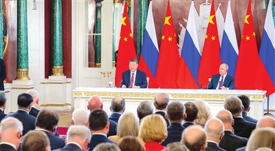 要坚持和衷共济,做全球治理的引领者。世界前途命运应该由各国共同掌握,全球发展成果应该由各国共同分享。中俄同为世界大国和重要新兴市场国家,都肩负着推动全球治理向更加公正合理方向发展的崇高使命。双方要加强在联合国、上海合作组织、金砖国家等多边平台的协作,坚守真正的多边主义,引领全球治理正确方向,推动普惠包容的经济全球化。