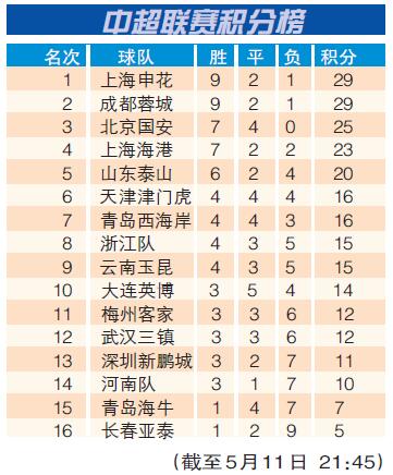 12轮比赛过后,上海申花队、成都蓉城队同积29分,排在积分榜前两位,5分的长春亚泰队和7分的青岛海牛队,身处积分榜最后两位的降级区内。中超联赛下周末进行完第13轮比赛后,马上要再出战一轮足协杯淘汰赛,之后便要进入休赛期,为国足备战美加墨世界杯亚洲区预选赛18强赛的两场比赛,腾出足够的备战时间。