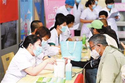 “5·12”国际护士节来临之际,东丽医院开展义诊服务,来自普外科、内分泌科、妇产科等多科室的医护人员以专业服务为市民送上健康关怀。 记者 周伟 摄