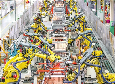 这是5月13日拍摄的江苏省江都高新技术产业开发区某汽车生产企业生产线。