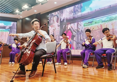 当得知南开中学管弦乐团正在排练电影《千与千寻》中的音乐片段时,梁宁与乐团学生们合作表演。在他的带领下,学生全情投入,现场气氛热烈,不时响起热情的掌声。乐团团长卢艺激动地说:“梁老师演奏的每一个音符都饱含深情,让我深刻体会到音乐的纯粹与美好。第一个音符响起的时候,我热泪盈眶,内心感受到音乐对心灵的滋养,也激励我今后更加努力地练习大提琴。”