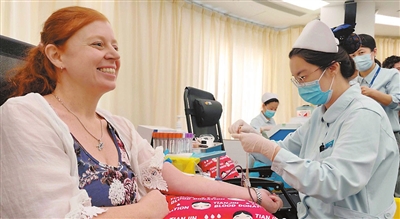 昨日,市对外友好协会、中国美国商会、和睦家医院和市血液中心联合举办“爱无国界 天津因你更温暖”献血活动,在我市工作和学习的29位外籍爱心人士献出热血,总献血量达9200毫升。 记者 曹彤 摄