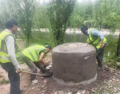 记者接报后赶到现场看到,问题井位于海逸长洲瀚景园小区外、卫津河西岸。这口井的形态比较特别,井盖高出地面一米左右,井盖上有一个“雨”字,用砖和水泥搭成的井身破损严重。从井盖标识看来,像是一个排水井,雨季即将来临,如果不赶紧修好,可能影响排水。记者将情况分别通报给西青区津门湖街道办事处以及市水务局排水管理处。
