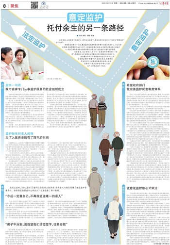 “制约与监督是有序运行的保障。”王萌还建议,借鉴加拿大公共监督办公室模式,设立独立监护监督委员会,对监护人履职情况定期评估,必要时冻结财产或更换监护人。鼓励专业人员、公益组织参与监督,形成多元监督网络。 (文中涉及老人均为化名)