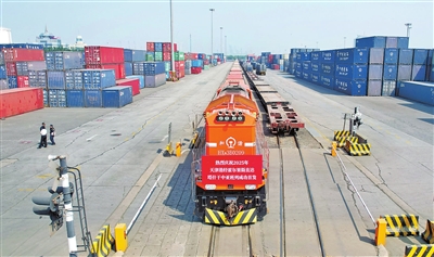 为保障此次班列顺利开行,天津港集团与铁路、海关及航运贸易企业共同发力,构建起全链条服务保障机制。“班列上的货物主要来自海运,以汽车配件为主,还包括机械设备、工程建材、家电等,我们统筹了港口作业资源,提高码头接卸效率,压缩货物的停留时间,并和铁路、海关等部门协同不断加快货物周转效率。”天津港集团物流公司经理张侃说。天津新港海关物流监控处多式联运监管科宋晓光科长也介绍:“我们嵌入式开展了无纸化抽核集装箱商业封志,企业可以免于提交纸面提单,再叠加铁水联运‘港场直通’便利措施,集装箱卸船后可直达铁路场站,节省货物周转时间。”