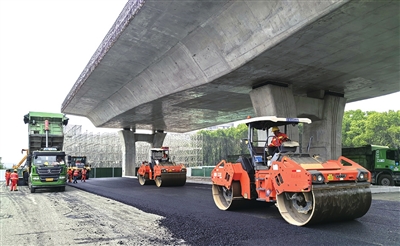 5月20日,由驻津央企中国铁建大桥局承建的张家港高铁新城市政项目路基沥青摊铺工程全面展开。