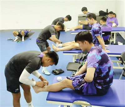 现在的津门虎队医疗组,除了沈春锋,还有4位年轻的按摩师。沈春锋的工作状态是,每天上午都要逐一了解队内每名球员的身体情况,中午之前将整体信息,特别是有伤病风险的球员状态信息,汇总后交给教练组,这是训练安排的重要依据。另外每堂训练课,按摩师们忙着其他工作,沈春锋就在“溜达”和“聊天”——球员们训练时做动作的状态,甚至一些下意识动作,往往是身体情况的反映,能看出很多与伤病风险相关的端倪,需要溜达着观察;和体能康复教练聊天也是“刚需”,医疗组需要针对伤员给出康复训练进度、强度的建议和反馈。