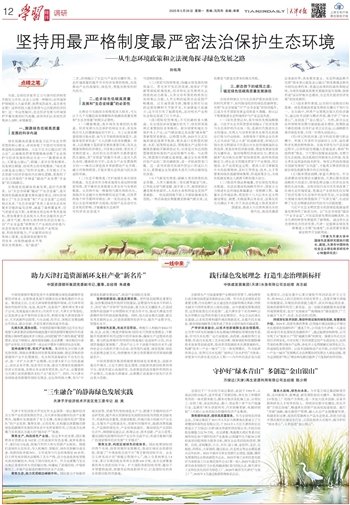 (五)服务国家战略,彰显天津担当。作为京津冀协同发展的关键枢纽,天津以服务国家战略的大局意识,将绿色理念融入经济社会发展的生动实践。这些实际行动不仅有效改善了区域生态环境质量,更通过产业结构优化实现了经济发展与生态保护的良性互动,为全国超大型城市绿色转型提供了“天津方案”,生动诠释了生态文明建设的时代担当与实践智慧。
