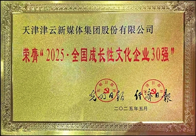 5月26日,2025文化强国建设高峰主论坛在深圳召开,论坛上发布了经中宣部组织认定,由光明日报社、经济日报社等单位联合评选的“2025·全国成长性文化企业30强”榜单,津云新媒体集团成功入选,成为天津宣传文化系统首个入选的国有企业。