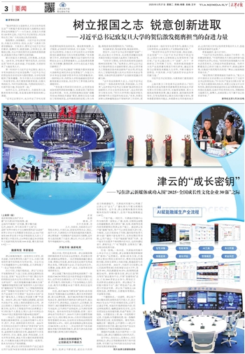 5月26日,2025文化强国建设高峰主论坛在深圳召开,论坛上发布了经中宣部组织认定,由光明日报社、经济日报社等单位联合评选的“2025·全国成长性文化企业30强”榜单,津云新媒体集团成功入选,成为天津宣传文化系统首个入选的国有企业。