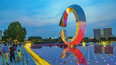 日前,天津文化中心提升改造工程进入收尾阶段,其中园区内的标志性建筑“大C”雕塑和满月塔的灯光调试工作正在进行当中。