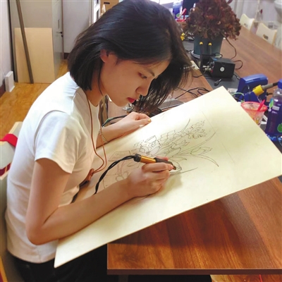 据了解,烙画的制作时间随着制作主题的复杂程度变化,通常需要两到三个小时。虽然课业负担逐渐加重,但只要有空,李若琳还是会在周末抽出一整块的时间去做烙画。“起初看到烙画的时候,我觉得应该是一件很简单的事,只要能控制用笔就没什么大问题。”李若琳说,“但随着学习越来越深入,我发现如果想把画面做得更精美、细节更丰富,就需要花费更多时间。”