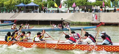 昨天,天津师范大学举办龙舟拔河比赛。全校师生分为19个代表队,在锣鼓声中奋桨击水,以传统文化创新迎接端午节的到来。 记者 姜宝成 张立 摄