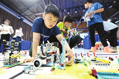 在科技周河西区主场活动上,近150名中小学生,围绕机器人综合技能、创意机器人、机器人工程挑战等项目展开激烈角逐。