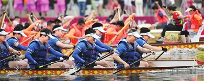 昨天上午,“天津银行·2025天津海河国际龙舟赛暨‘体彩杯’天津市全民健身健康运动会龙舟系列赛”在海河国泰桥至富民桥水域开赛。 记者 孙震 摄