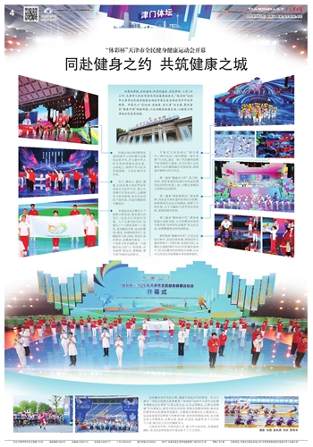 第一篇章“健康活力颂”,柔力球、冰球、桨板等或传统或时尚的全民健身运动项目轮番上演,勾勒出津城活力四射的运动图景。