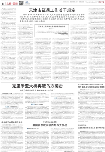 第五条 市人民政府和天津警备区根据国务院和中央军事委员会的征兵命令,确定本市每年征兵的人数、范围、时间和要求,下达本市征兵命令,部署本市征兵工作。