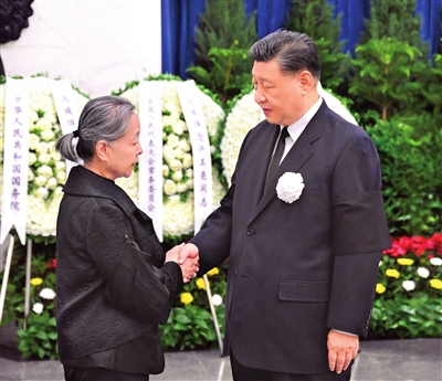 上午9时30分许,习近平、李强、赵乐际、王沪宁、蔡奇、丁薛祥、李希等,在哀乐声中缓步来到许其亮同志的遗体前肃立默哀,向许其亮同志的遗体三鞠躬,并与许其亮同志亲属一一握手,表示慰问。