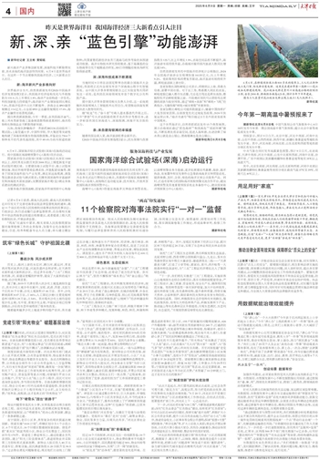 6月8日,国家海洋综合试验场(深海)在海南启动运行。南中国海区域海啸预警中心(海南)同步启动。