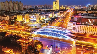 夜幕降临,我市友谊路沿线灯火璀璨,水晶宫饭店、津谊桥、莲花酒店等地标建筑披上绚丽的光影外衣。