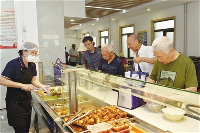 杨荣和老伴儿身体都不好,子女又在外地,每天买菜、做饭都是大负担,老两口经常对付一口了事。“社区养老服务中心开了小食堂,解决大问题了。菜品丰富,每天还不重样,我这两年都吃胖了。”杨荣笑着说。