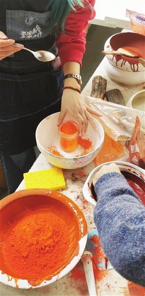 用敦煌当地矿石等研磨制作颜料。