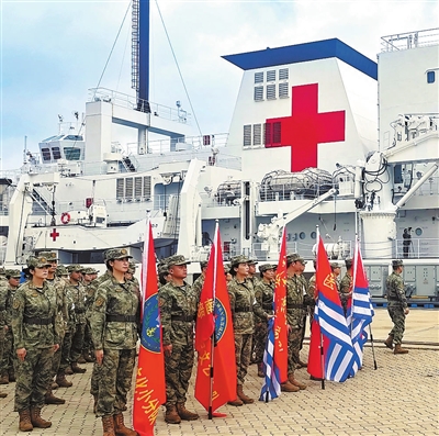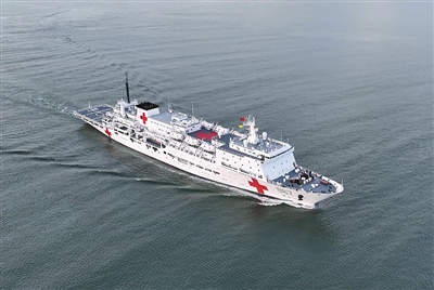 组图 中国海军“丝路方舟”号医院船赴南海各岛礁执行“健康送海疆”任务。 新华社发