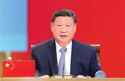 习近平发表题为《弘扬“中国-中亚精神” 推动地区合作高质量发展》的主旨发言。 新华社记者 黄敬文 摄