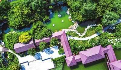 3.植被花海映亭台。