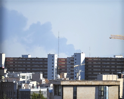 6月17日,在伊朗首都德黑兰市区拍摄的浓烟。