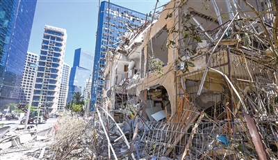 6月19日,在以色列中部拉马特甘拍摄的在导弹袭击中被毁的建筑。 新华社发
